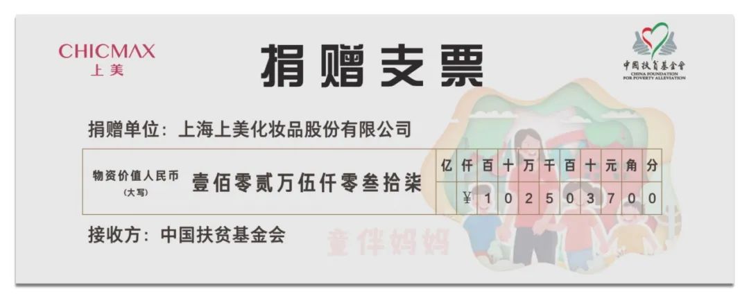 3月8日,值第112個國際三八婦女節(jié)之際,上美集團(tuán)向中國扶貧基金會“童伴媽媽項(xiàng)目”捐贈102萬元紅色小象產(chǎn)品物資,用于關(guān)懷江西省萬安縣等地的山村留守兒童,支持鄉(xiāng)村振興與發(fā)展。