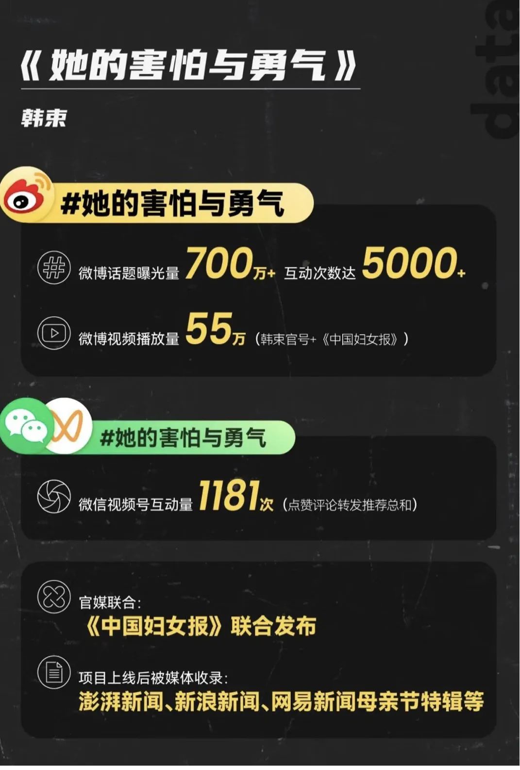據(jù)統(tǒng)計,本次活動話題曝光量超700萬,互動次數(shù)超5000次,情感短片播放量超55萬次;得到了官媒、主流媒體、垂直平臺的廣泛關注——中國婦女報發(fā)聲,澎湃、新浪、網(wǎng)易等媒體轉(zhuǎn)載報道,Socialbeta、案例SHOWCASE等收錄;品牌自媒體后臺也收到了數(shù)百條關于女性生育問題的真實討論。