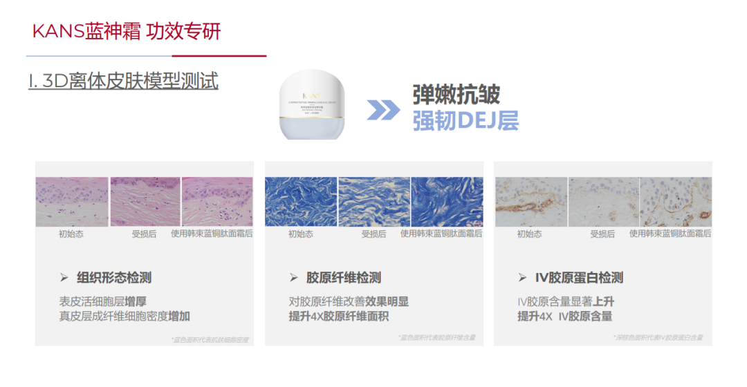 我僅拿系列中的“藍(lán)神霜”舉例,它通過了3D離體皮膚及人體臨床功效測(cè)試。
