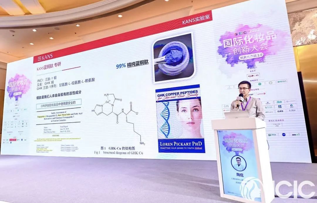在大會(huì)抗衰分論壇上,韓束科研團(tuán)隊(duì)代表做《協(xié)「銅」抗衰——韓束藍(lán)銅肽白金系列實(shí)戰(zhàn)開發(fā)》主題演講,對(duì)今年的明星系列藍(lán)銅肽的開發(fā)進(jìn)行全方位的解析,也為行業(yè)研發(fā)人員如何運(yùn)用好藍(lán)銅肽這個(gè)成分,提供了許多實(shí)用的方法論。