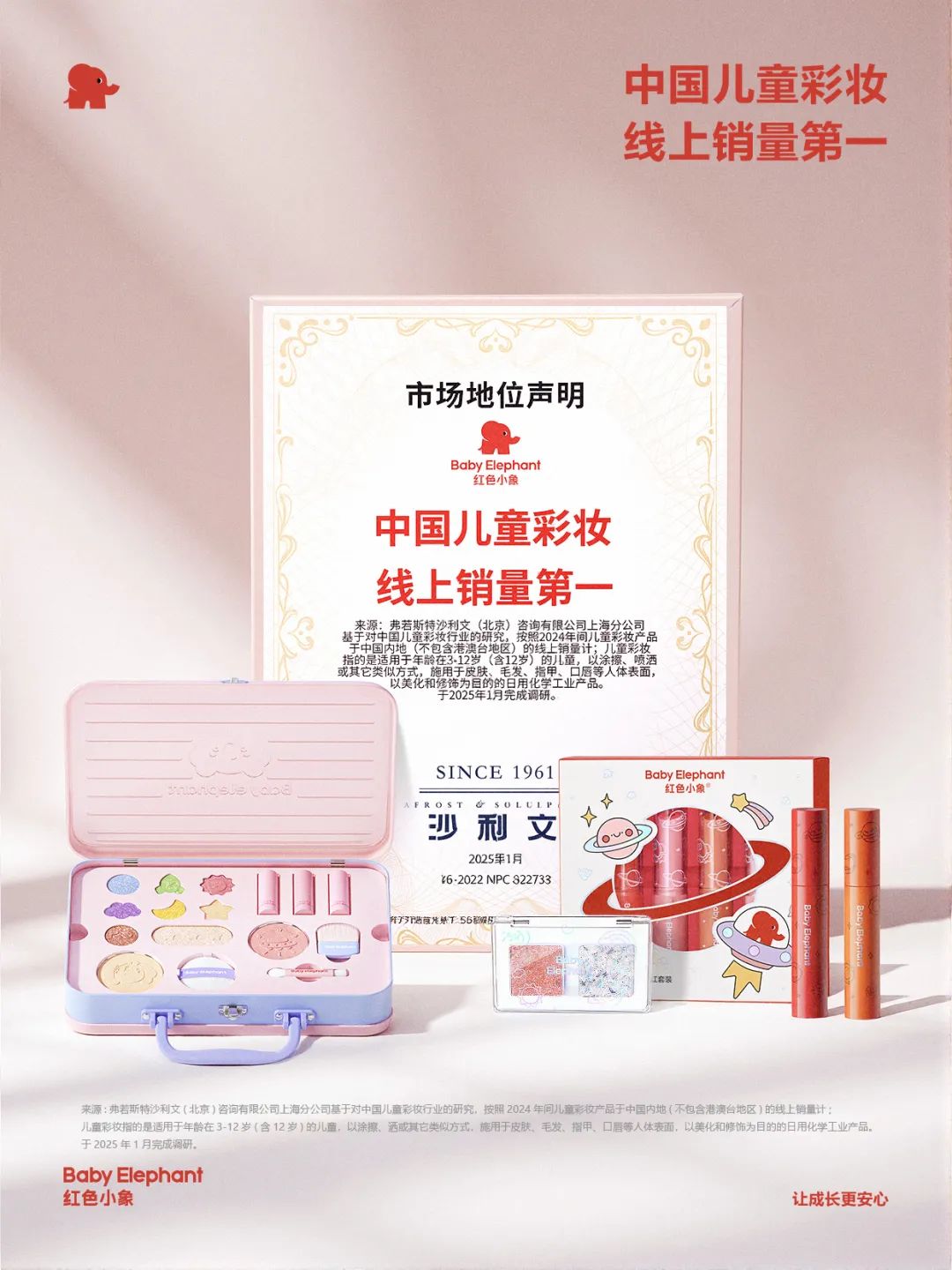根據(jù)沙利文調(diào)研:基于對(duì)中國(guó)兒童彩妝行業(yè)的研究,按照2024年間兒童彩妝產(chǎn)品于中國(guó)內(nèi)地的線上銷量計(jì),深入統(tǒng)計(jì)了2024年1月1日至2024年12月31日期間的兒童彩妝線上銷量,最終確認(rèn)紅色小象為2024年中國(guó)兒童彩妝線上銷量第一的品牌:在2024年共計(jì)售出40.4萬件產(chǎn)品。