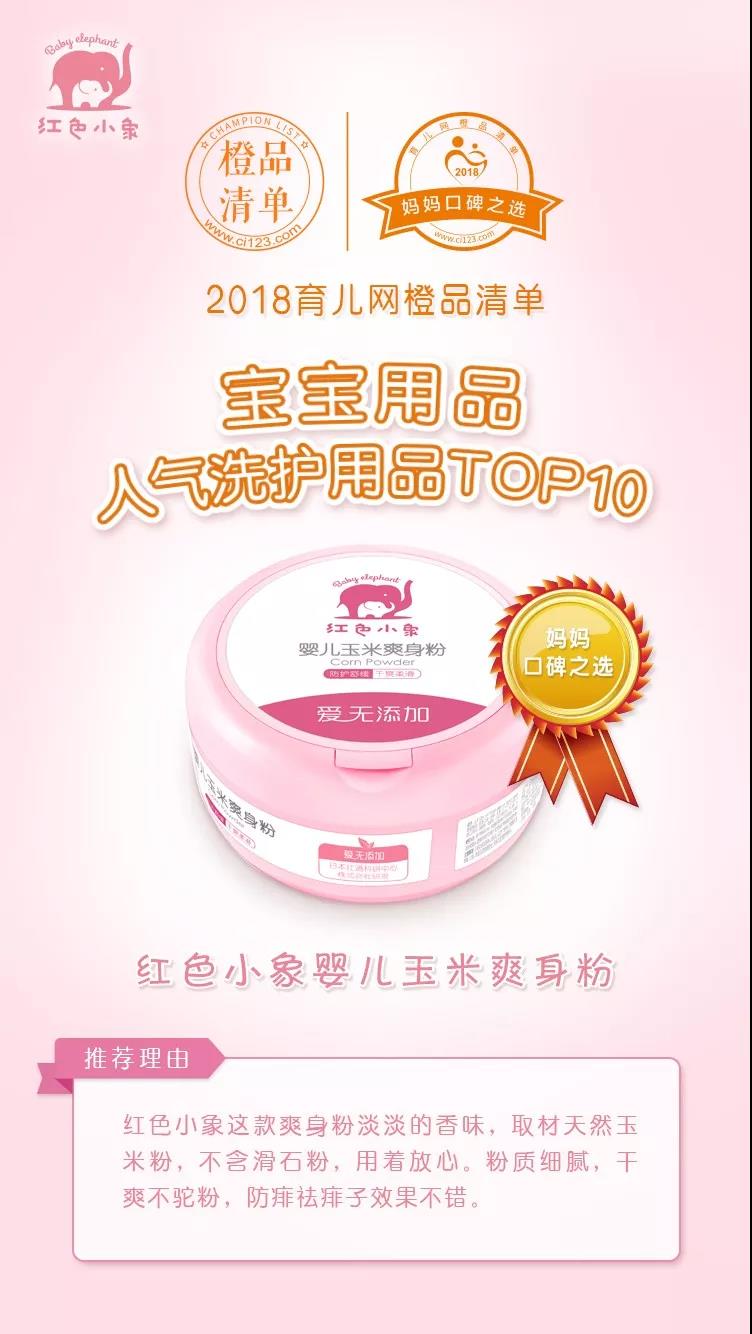 紅色小象嬰兒玉米爽身粉獲“寶寶用品·人氣洗護(hù)用品TOP10