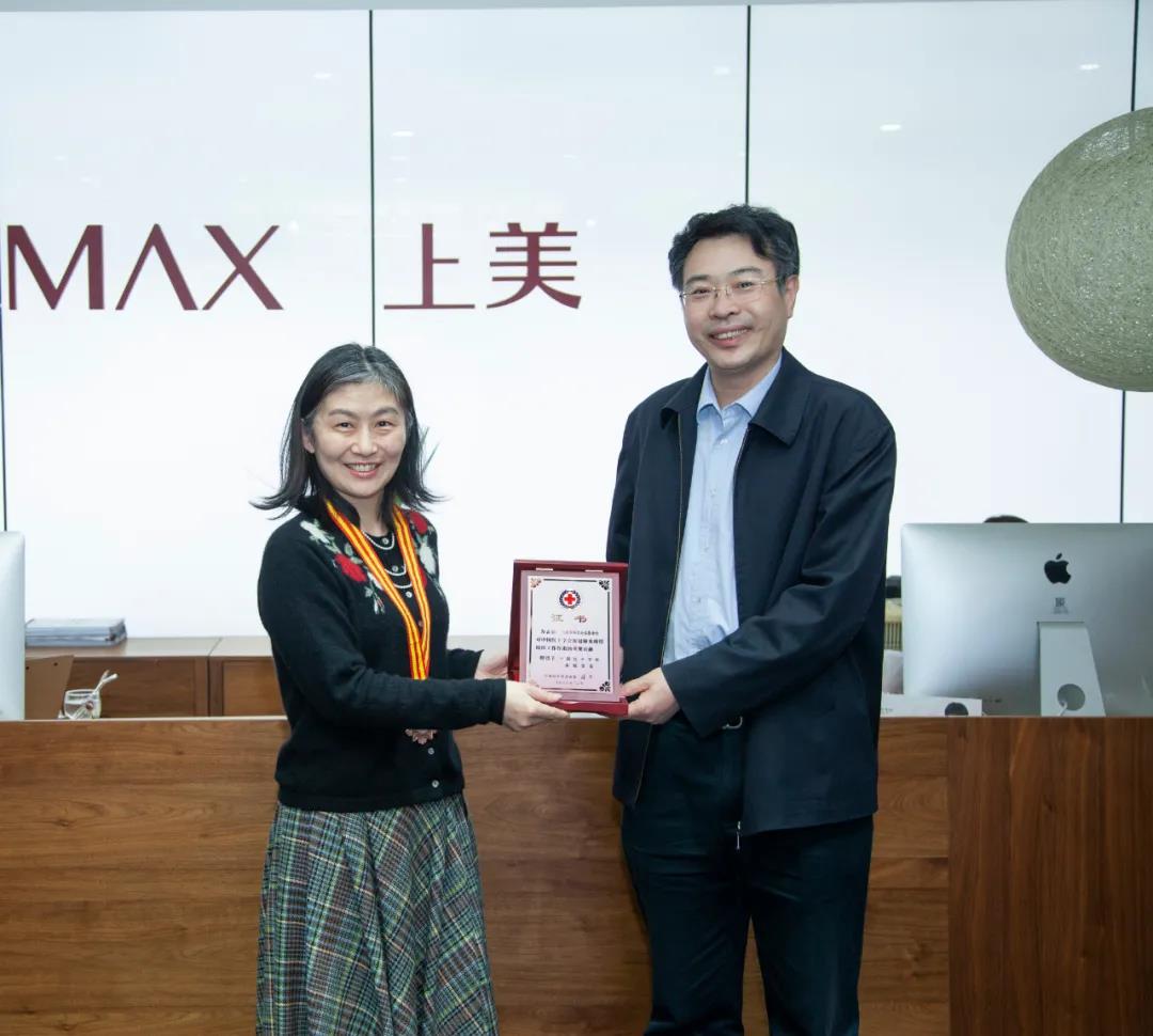 今日,中國(guó)紅十字會(huì)總會(huì)籌資與財(cái)務(wù)部部長(zhǎng)王海濤一行到訪上美集團(tuán),為上美韓束公益基金會(huì)頒發(fā)紅十字會(huì)“奉獻(xiàn)獎(jiǎng)”獎(jiǎng)?wù)录白C書(shū),表彰其在2020年對(duì)新冠肺炎疫情防控工作中作出的貢獻(xiàn)。韓束公益基金會(huì)副理事長(zhǎng)李菲作為代表接受榮譽(yù)。