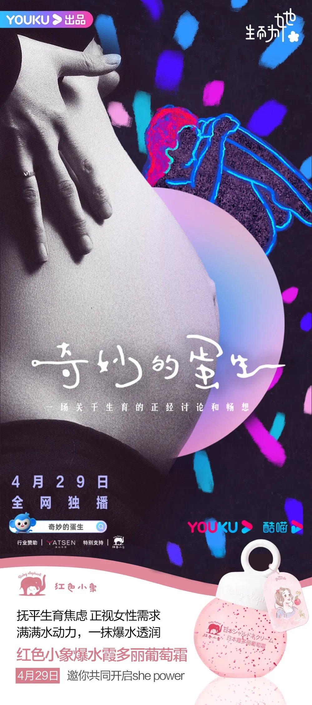 作為合作伙伴,紅色小象大力支持國內(nèi)首部聚焦輔助生殖行業(yè)的紀(jì)錄片《奇妙的蛋生》,攜滿滿水動(dòng)力、一抹爆水透潤的霞多麗葡萄霜,共同開啟#she power#,一起為女性力量助力!